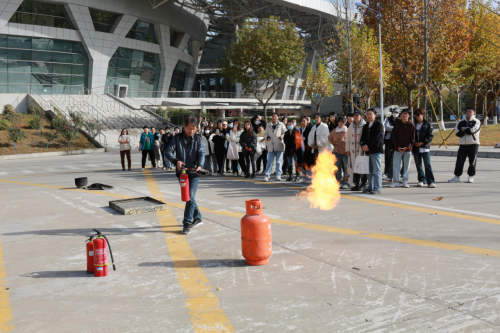 Vice Dean Yang first reported on the recent fire safety inspections in the university, emphasizing the importance of campus fire safety by citing examples of campus fire accidents. Deputy Director Na Longyu vividly explained fire safety knowledge from four aspects: evacuation capability, hazard inspection capability, fire safety promotion capability, and primary firefighting capability.