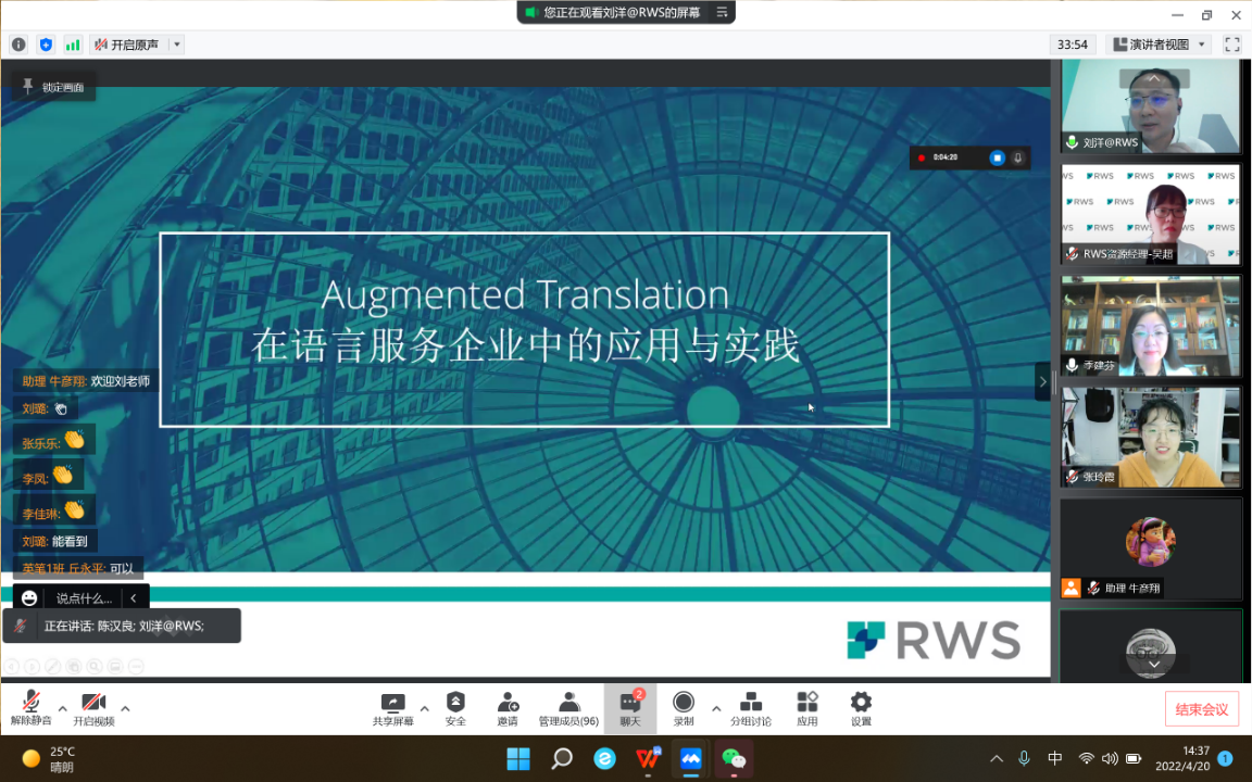 420日下午,应我院MTI中心邀请,RWS(如文思)中国公司技术部经理兼公司技术委员会秘书长刘洋、RWS中国公司资源经理吴超为我院师生进行线上宣讲。会议由学院MTI中心主任季建芬教授主持,我院部分专业教师2021级全体硕士研究生一同参加了会议。