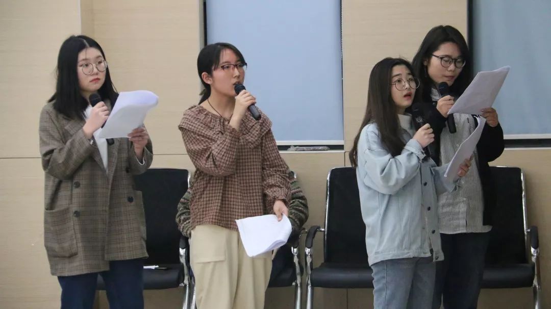很快,正式进入比赛环节。各组选手逐个登场,用精心挑选的视频片段、流利精准的发音和惟妙惟肖的模仿向现场的评委老师和同学们展示了训练良久的成果,还原了一段又一段耐人寻味的影视片段。现场的角逐紧张而精彩,每一组的配音作品各有特点,比拼激烈,难分仲伯。同学们的配音作品赢得了在场老师们的频频赞许和现场观众们的阵阵喝彩。